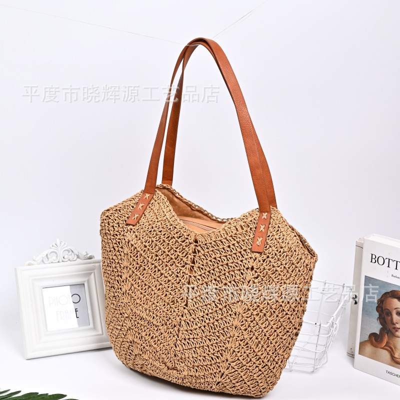 New Hollow Ins Woven Bag Fashion Single Shoulder Straw Bag Paper Rope Hand Woven Casual Female Bag Beach Bag